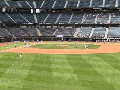 天然芝育成のために屋根が開いている中で、少年野球の試合が行われていました。⚾