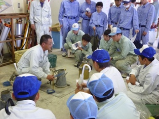 授業で学習した内容を活かせる場面もありましたが、初めて見る機会や器具もあり、三和コンクリートの方に教えていただきながら実習することができました。