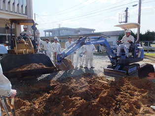 12月6日(火)3、4時限目の絵文字:星3年農業工学科絵文字:星「農業土木施工」「農業機械」の授業で、建設機械を使い、駐車場のコンクリート舗装工事のための整地実習を行いました絵文字:笑顔