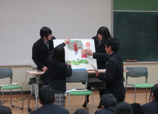 福祉家庭科では、生活教養班が着物の帯結びの発表を、被服製作班は作ったドレスについての発表を、福祉班は研究したことの発表をそれぞれ行いました。