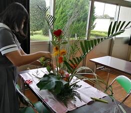 熊本県学校農業クラブ連盟フラワーアレンジメント競技会が7月27日(火)に北稜高校(玉名市)で行われました。用意された花材をそれぞれのテーマとコンセプトに沿って50分で作品を仕上げる競技で、大会には県下の高校生20名がエントリーし、結果として本校2年園芸科学科の古里あゆみさん(氷川中)がオリンピックをイメージした作品を製作し、優秀賞を受賞しました。