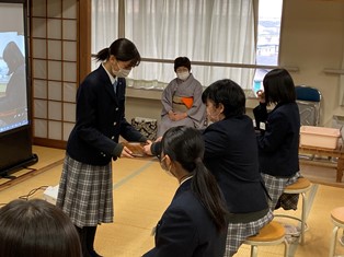 いつも茶道部の外部講師として来校いただいている中山先生に茶道の作法や日本文化の1つである畳の部屋での過ごし方などを教えていただきました。