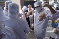 3年生食品科学科の「食品製造」の授業で、肉加工が行われています。