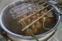 今回は、ロースハムをネットに入れて、燻煙を行いました。