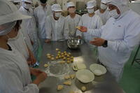 製造工程を先生から教えてもらい、各自メロンパンを製造していきます。