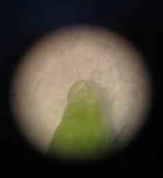 そんな声が聞こえてきそうな感じです。ちなみに一生懸命見ているのはこれです↓茎頂分裂組織です!