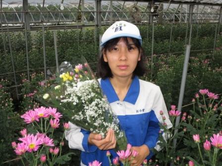 年末に向けてキクの収穫が始まりました。黄色や白、ピンクなど色鮮やかなキクを一本ずつ収穫して、下葉を落とし、束ねていきます。8月から挿し芽をしてわき芽とり、摘蕾を丁寧にしたキクが出荷されていくのを見送り「うれしい気持ちと思い入れがあるのでさみしい気持ちが半々です」と言う専攻生でした。