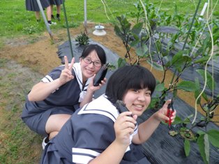 福祉家庭科の1年生が育てているナスとピーマンの収穫が始まりました絵文字:キラキラ