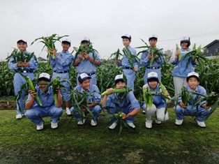 笑顔がはじけるほど大きなスイートコーンが収穫できました