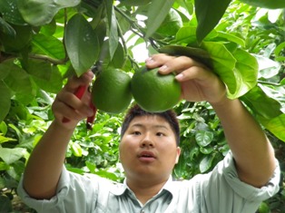 今日は梅雨の晴れ間に摘果と摘葉の作業