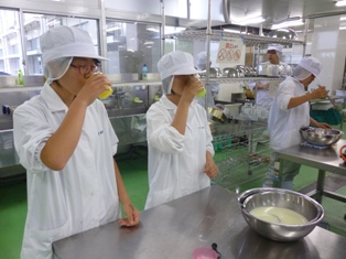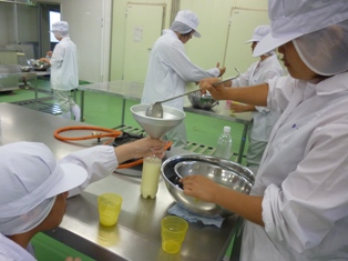 2年食品科学科の実習では、脱脂乳から乳酸発酵を行い、本格的な乳酸飲料の製造を行いました。