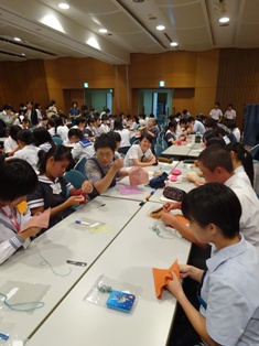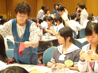 家庭クラブ活動では、夏休みに熊本県内の高校の家庭クラブ員が集まって指導者養成講座を受けます。
