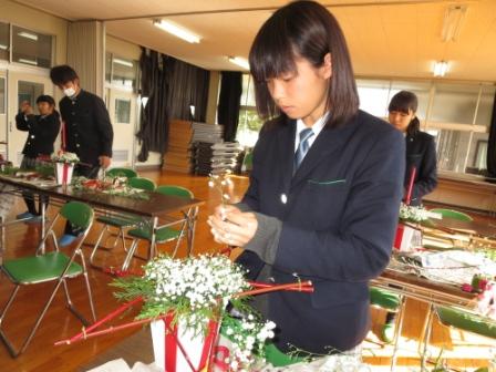 今日は園芸科学科2年生がフラワーアレンジメントに挑戦しました。普段は生産、管理、