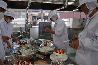 毎年恒例のクリスマスデコレーションケーキ実習を行いました