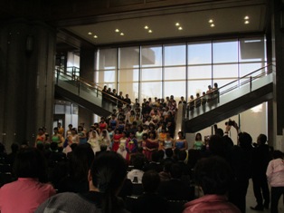 県庁新館ロビーの階段を舞台にたくさんのお客様にみてもらうことができました。