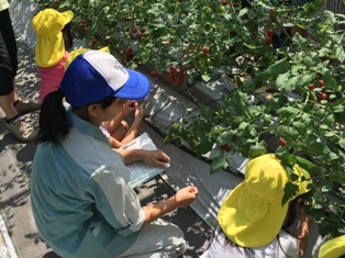 収穫したミニトマトを食べた後は、保育園に置くプランターに花植えを行いました!