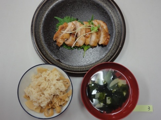 竹の子ご飯と若竹汁、それに若鶏のくわ焼きができました。