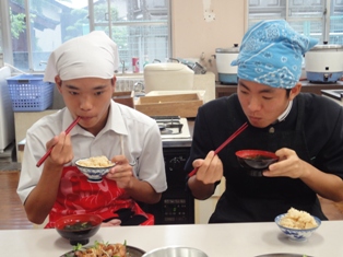 久しぶりの学校、そして調理、はりっきって実習する生徒の姿を見ることができました。