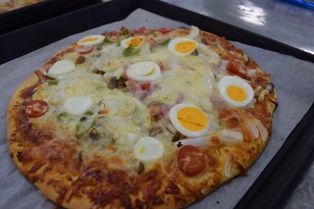 八農トマトケチャップをふんだんに使い、かなりおいしいピザになりました。