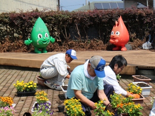 1班は有佐駅周辺の花植えを行っている「わっかな会」の皆さんとプランターへの植え込みを行いました