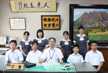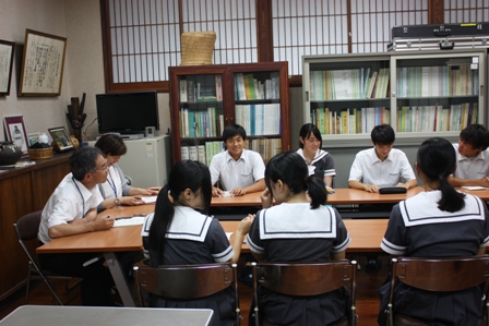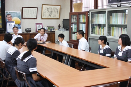 初めての校長室に、やや緊張ぎみの1年生たちでしたが、八農に入学したきっかけや入学して気付いた八農の魅力、課題などたくさんの意見を出してくれました。