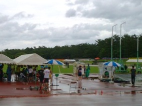 競技直前まで強い雨