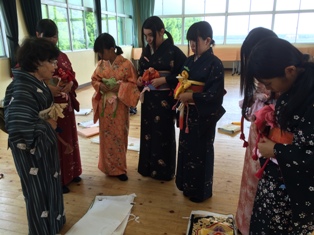 課題研究で着付けを学んでいます