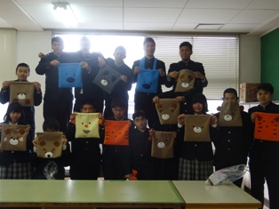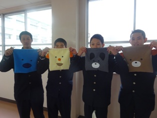 家庭科の授業で、どうぶつ巾着を作りました。かわいいでしょう?!