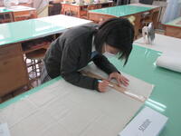 リビングデザインの授業で、余り布を使い、ティッシュボックスカバーを製作しました。