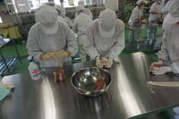 3年生食品科学科の「食品製造」の授業で、肉加工が行われています。