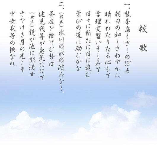 ダウンロード後、お聞きください。 ⇒ 校歌をダウンロード