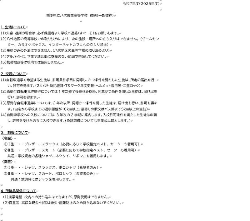 トップページ八農ブログ学校の概要 学科紹介 部活動・クラブ活動 進路指導行事予定学校生活 図書館校則(一部抜粋)中学生の皆さん 生徒・保護者・PTA関係 卒業生・同窓会の皆さん 八農動画
