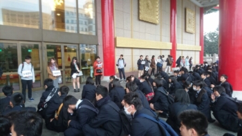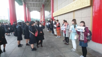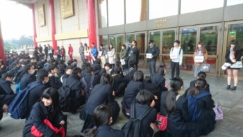 故宮博物院見学中2 見学前に記念撮影 1組・2組