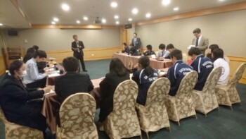 夕食が終わりホテルに到着しました。この後、班長会議です。