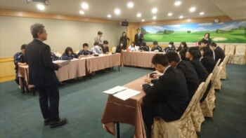今回の修学旅行最後の班長会議です。4日目の反省と最終日の連絡を行いました。