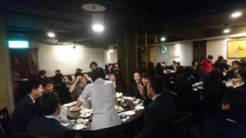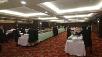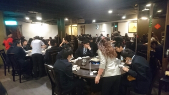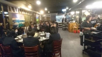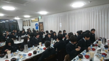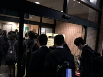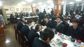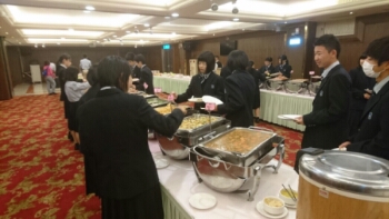 班別自主研修が終わり、各班が夕食会場へ戻ってきました。