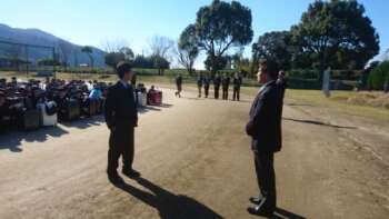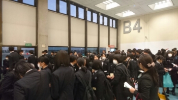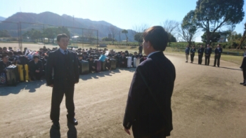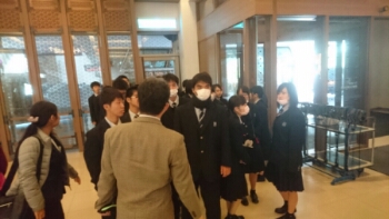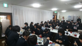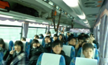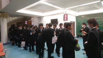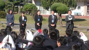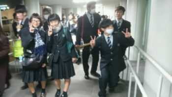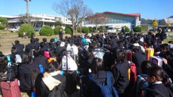 途中の事故渋滞のため、予定より遅れて11時51分に、学校に到着しました。