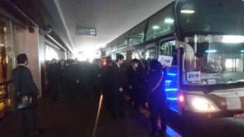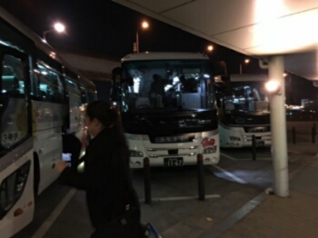 到着ロビーを出てバスが待っている駐車場へ向かいます。