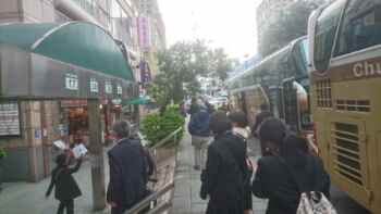 班別自主研修のためのB&Sプログラムの大学生との待ち合わせ場所へ移動します。