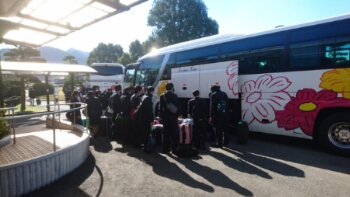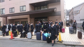 班別自主研修へ出発します。大学生のお兄さん、お姉さん どうぞよろしくお願いいたします!