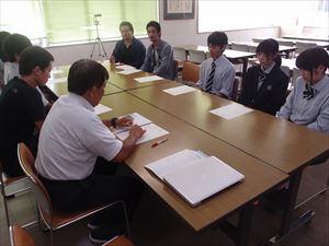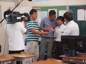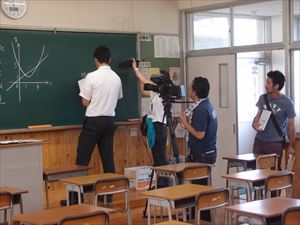 八代清流高校CM撮影開始 授業風景撮影は古庄先生の数学 山西教頭先生もご満悦です