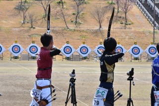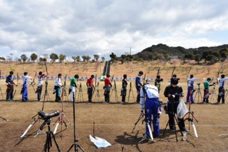 本日は、午前中に個人予選が行われました。昨日以上に強い風が吹く中、コロコロと変わる風向きや強さの変化を読みながらの戦いとなりました。開始直後は風に慣れておらず点数が思うように伸びませんでしたが、次第に高得点も出るようになり、最後まで集中して射ち切ることができました。