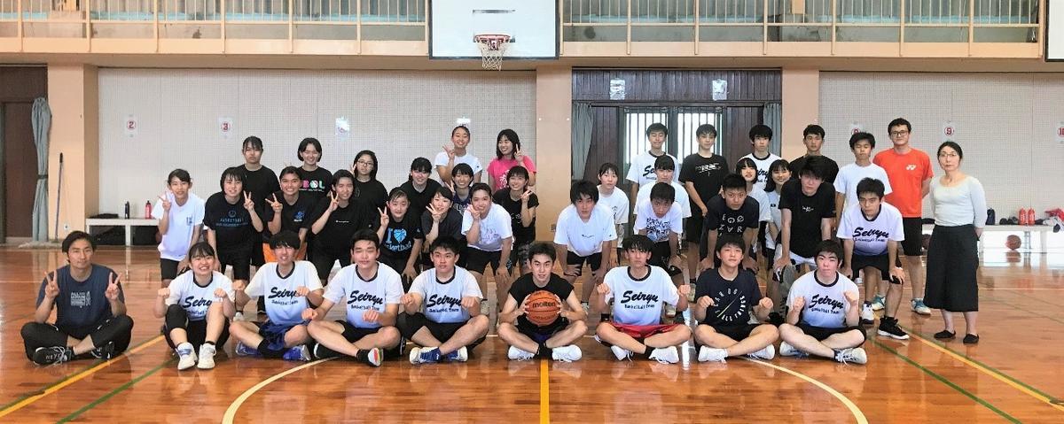 令和2年度の八代清流高校バスケットボール部は、コロナ禍ではありますが、2020年6月にスタートをきりました。男子、3年生7名、2年生8名、1年生4名、女子、3年生1名、2年生8名、1年生11名、総勢39名、と顧問3名です。