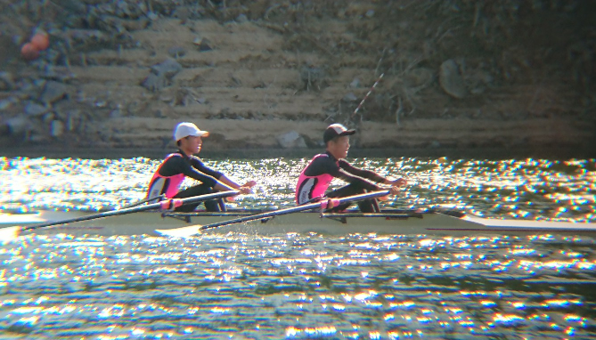 インターハイも終わり、いよいよ一年生部員のみの練習が始まりました。部員は減りましたが、一年生もようやくシングルスカルを乗りこなせるようになりました。