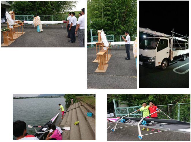 夏休み中の雨や球磨川の放水で練習環境が整わず、熊本市江津湖ボートコースで練習をさせていただきました。学園大付属高校の艇庫や熊本県ボート協会強化艇を使用させていただき、7月末~8月インターハイ直前まで江津湖ボートコースでの練習を行いました。この練習では保護者送迎やボート競技に携わるかたのサポートのおかげで実施する事が出来ました。インターハイではこの感謝を込めて全力で頑張りたいと思います。