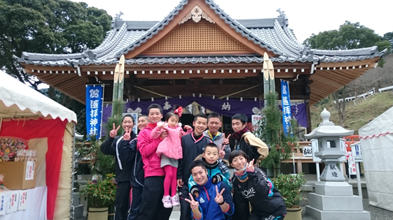 毎年、遙拝神社で安全と必勝の祈願を行い、1年をスタートさせます。