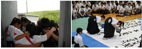 八代清流高校書道部は八代南高校書道部からの伝統を受け継ぎ、毎日の練習に初心者も経験者も男子も女子も分け隔てなく皆仲良く励んでいます。