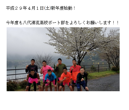 あけましておめでとうございます。本年も八代清流高校ボート部よろしくお願いいたします。今年のスタートは1月4日に2年部員2名、3年部員2名、卒業生が参加をして始まりました。今年は、3月の全国選抜大会をスタートに男子ダブルスカル連覇を目標として頑張りますので皆さんよろしくお願いいたします。