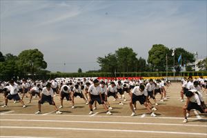 クラスマッチ開会式進行 校長挨拶(冨下校長) 準備運動(体育委員)