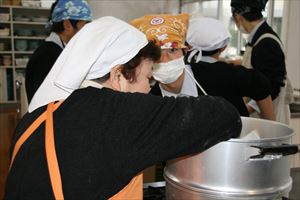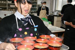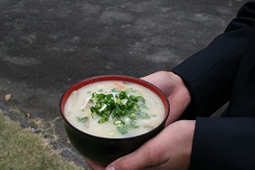マラソン後には、保護者の方々が準備してくださった、豚汁を食べ冷えた体を温めることができました。お母様方が作られた豚汁は大変美味しかったです。